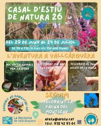 Vine a gaudir d'una experiència única al cor del Parc Natural del Montseny! Aquest juliol de 2026, l'escola de natura Rectoria de Vallcàrquera s'omple de vida amb el nostre casal de natura, on petits i grans podran descobrir els secrets del bosc, fer activitats a l'aire lliure i connectar amb la natura en un entorn idíl·lic. Un lloc perfecte per aprendre, divertir-se i crear records inoblidables. No t'ho perdis!